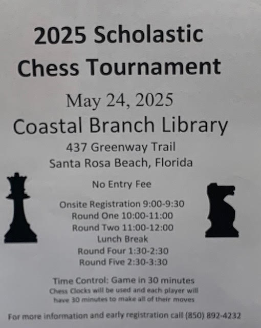 Chess with Mr. Owens is held every Tuesday at 3:30 pm at the Coastal Branch Library. All ages and all skill levels are welcome! Learn about chess openings, endings and…