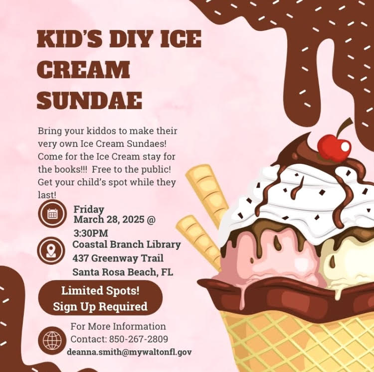 The Words on Wheels Bookmobile will be at Wee Care Park in Defuniak Springs from 12PM to 1PM. The Bookmobile will be open for circulation (check-in/check-out of library materials and…